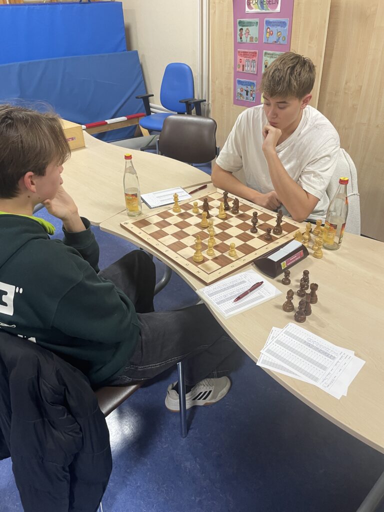 Zuvor gelang Stephan Balder ein Remis mit der „Polnischen Verteidigung“ gegen Denny Lawrenz (den Blitzentscheid gewann Denny), während Robert Weiß gegen Gerrit Knackfuß gewann.