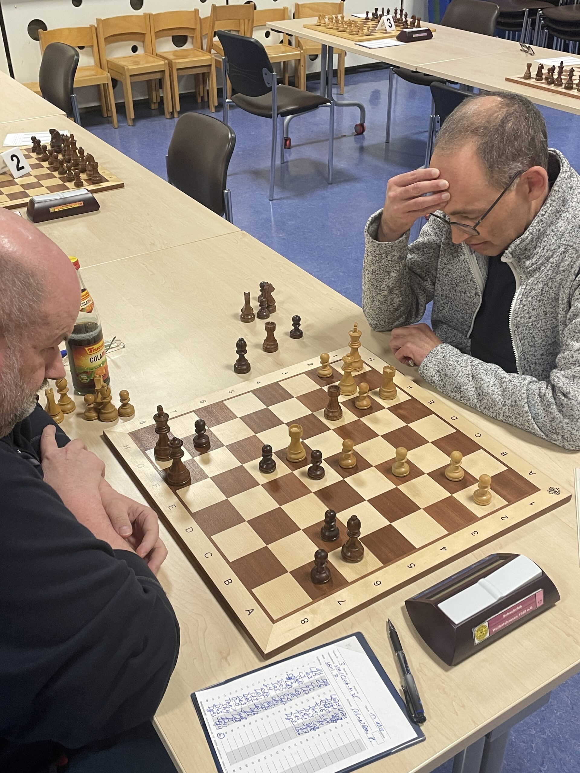 Zuvor gelang Stephan Balder ein Remis mit der „Polnischen Verteidigung“ gegen Denny Lawrenz (den Blitzentscheid gewann Denny), während Robert Weiß gegen Gerrit Knackfuß gewann.