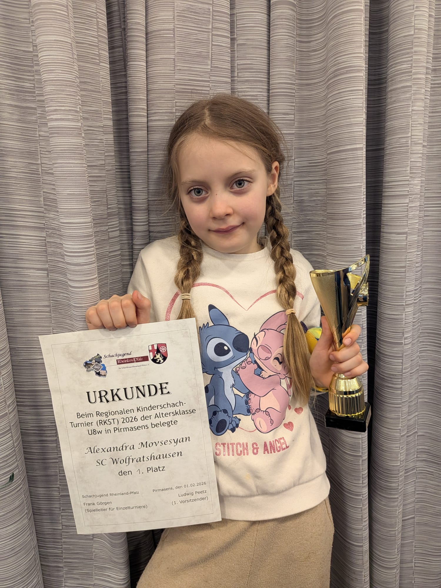Erneut hat Alexandra Movsesyan in ihrer noch so jungen Schachlaufbahn einen tollen Erfolg erzielt! Mit ihrem 3. Platz in einem U8-Turnier der Deutschen Schachjugend hat sich Alexandra nun sogar für die Deutsche Meisterschaft qualifiziert.