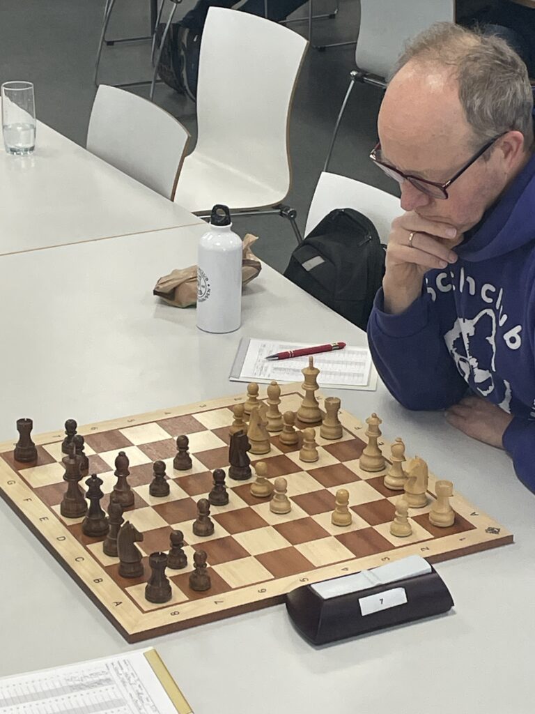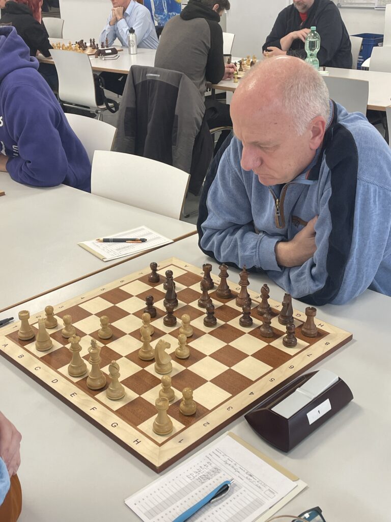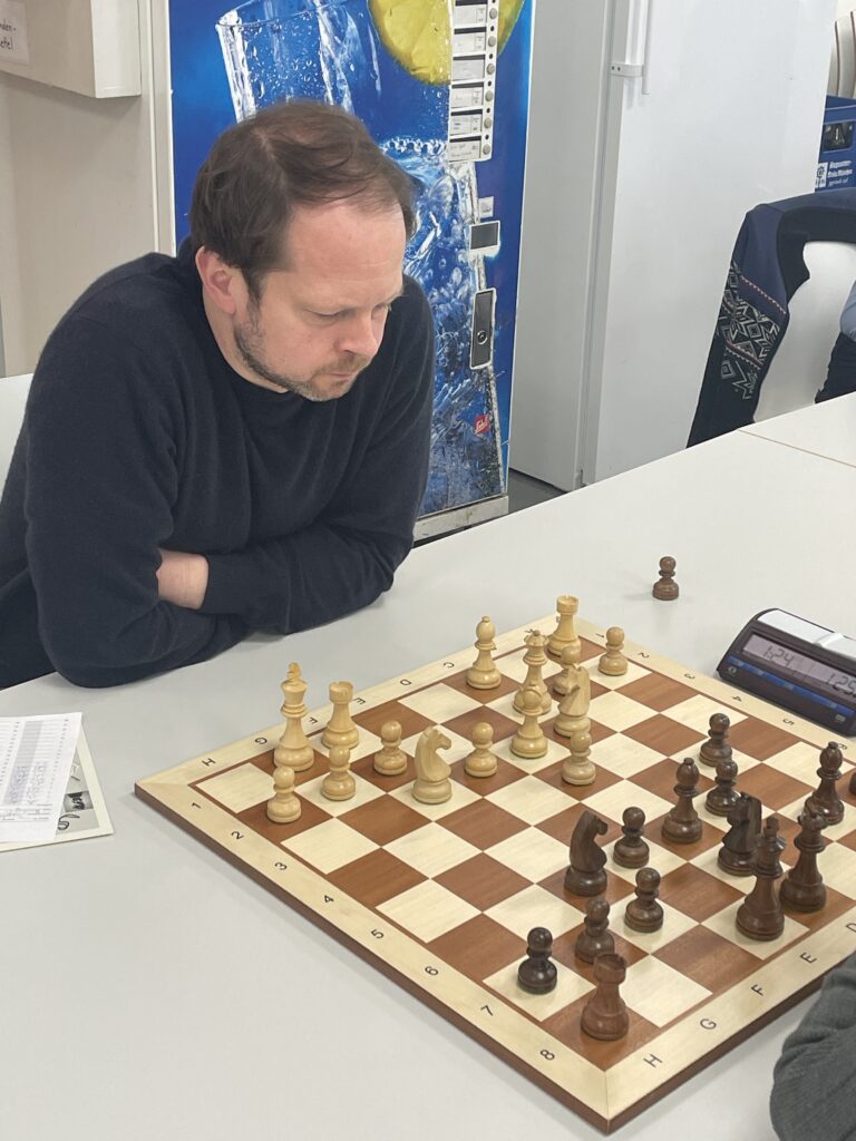 Matthias Schmidt an Brett 3 musste gegen die Holländische Verteidigung spielen. Eine Ungenauigkeit kostete zwischenzeitlich einen Bauer, Matthias hielt aber immer geschickt dagegen, so dass das letztendliche Unentschieden – zumindest aus der Zuschauerperspektive – nie in Gefahr geriet.