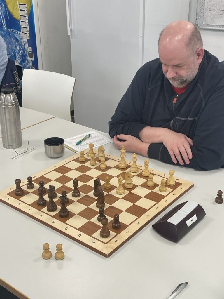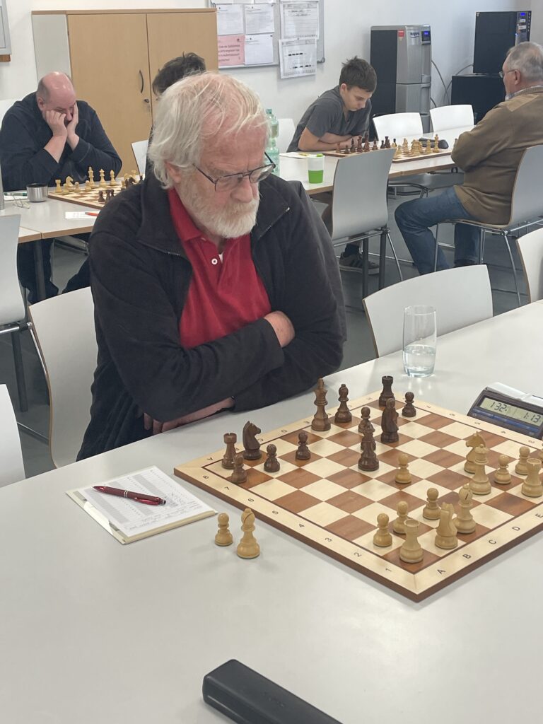 … der nicht lange anhielt! Denn Reinhold Pohle an Brett 2, der Skandinavisch verteidigte, gelang wenig später ein schöner Gewinn und brachte uns wieder in Führung, …