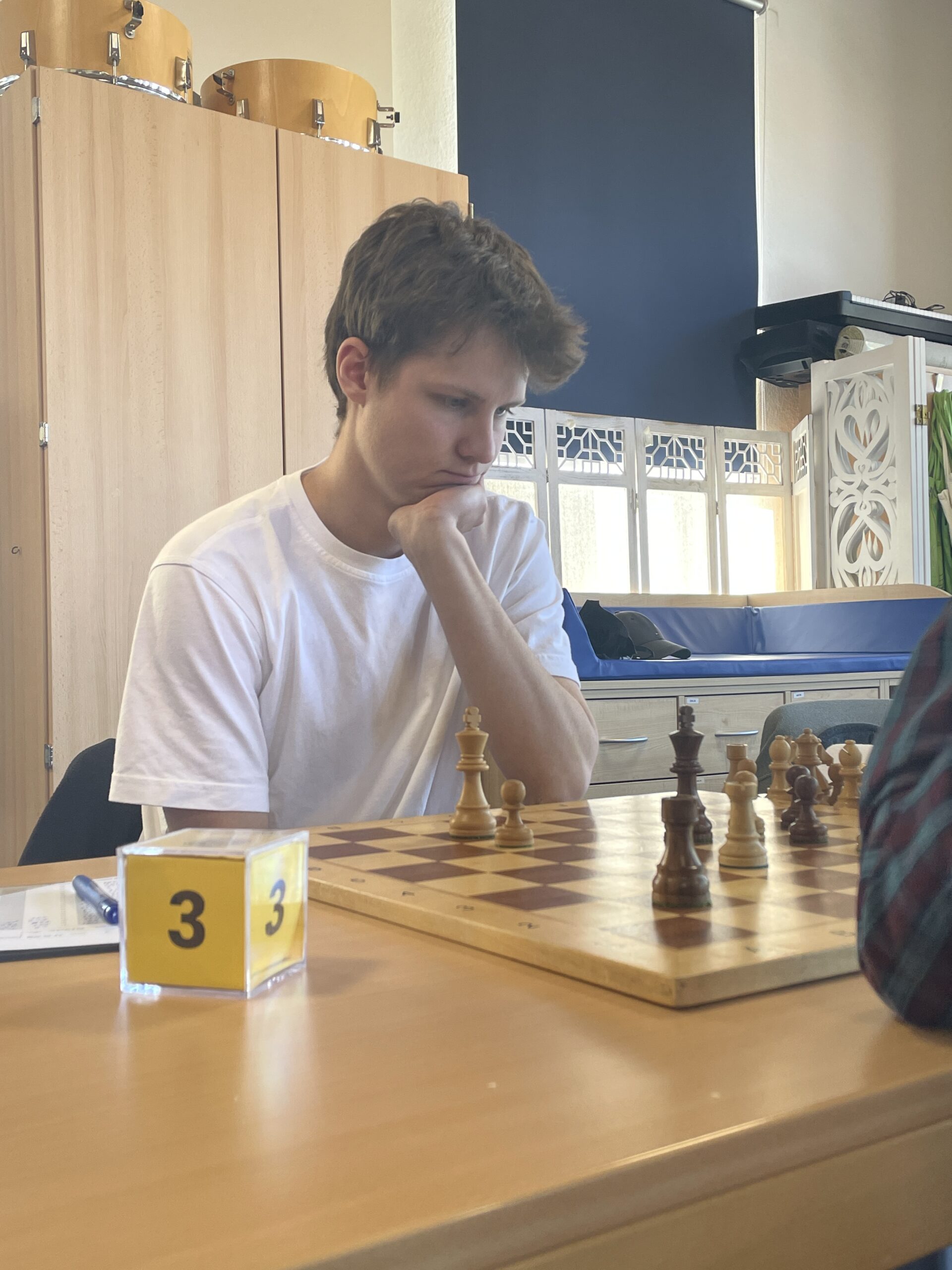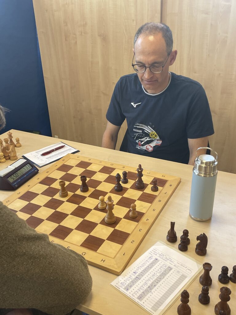 Toni Reichert kämpfte an Brett 4 leidenschaftlich, stand zeitweise klar besser. Aber am Ende reichte es nicht, sein Gegner hatte Materialvorteil und konnte in ein gewonnenes Bauernendspiel abwickeln.
